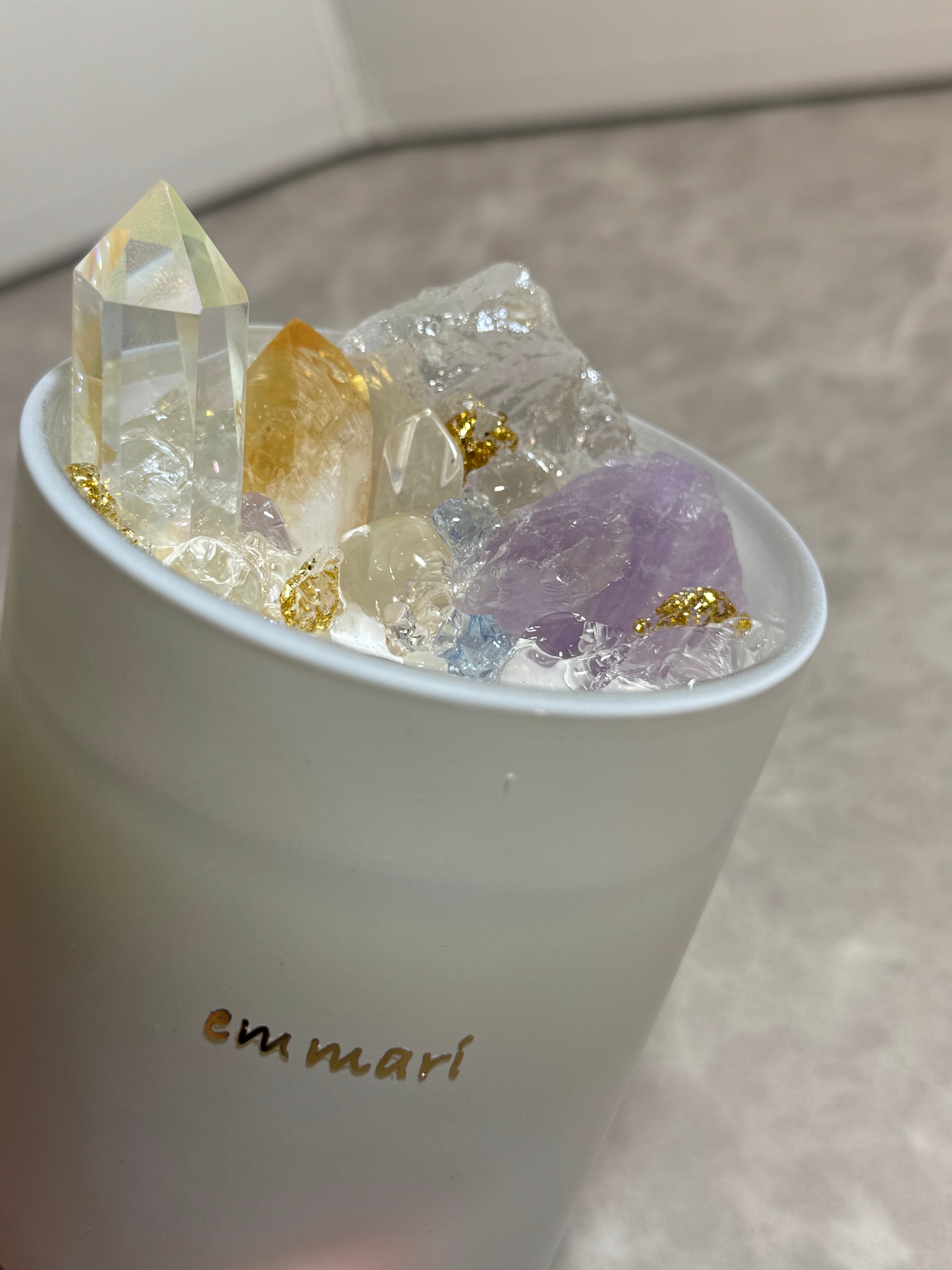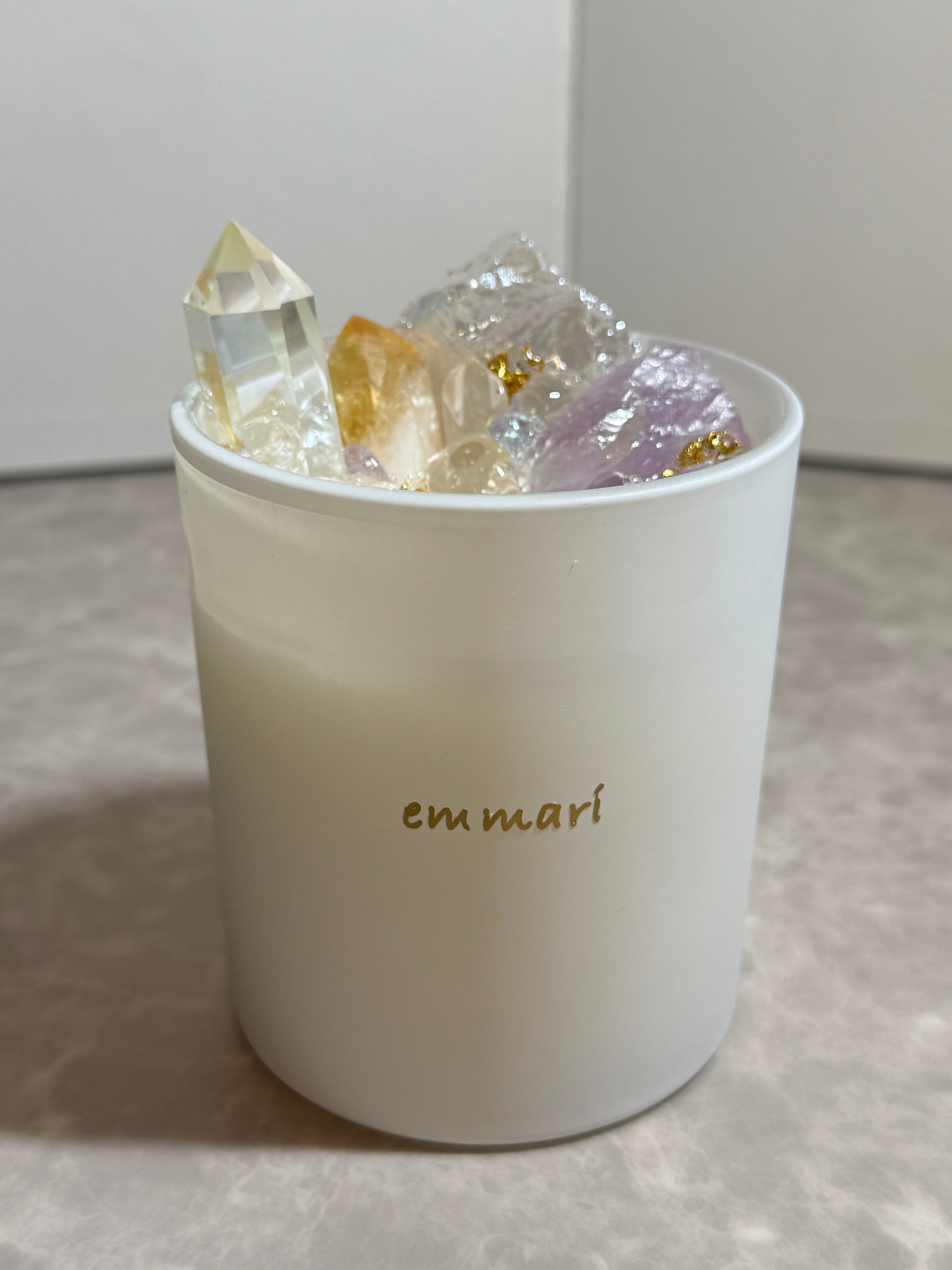 1点ずつ丁寧に作ったハンドメイド天然石アロマキャンドルです。emmariのキャンドルが毎日の生活にほんの少しでも癒しとHAPPYをもたらしてくれるよう願ってお作りしています。